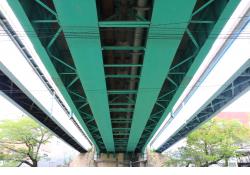 - (1)活荷重合成桁であるが,床版コンクリート打設時の工夫によって死荷重の一部も合成.