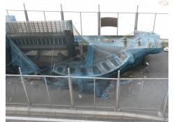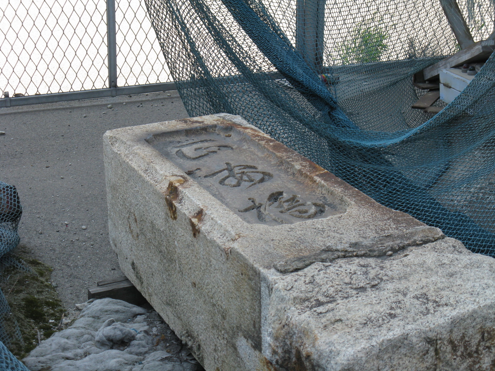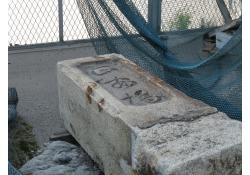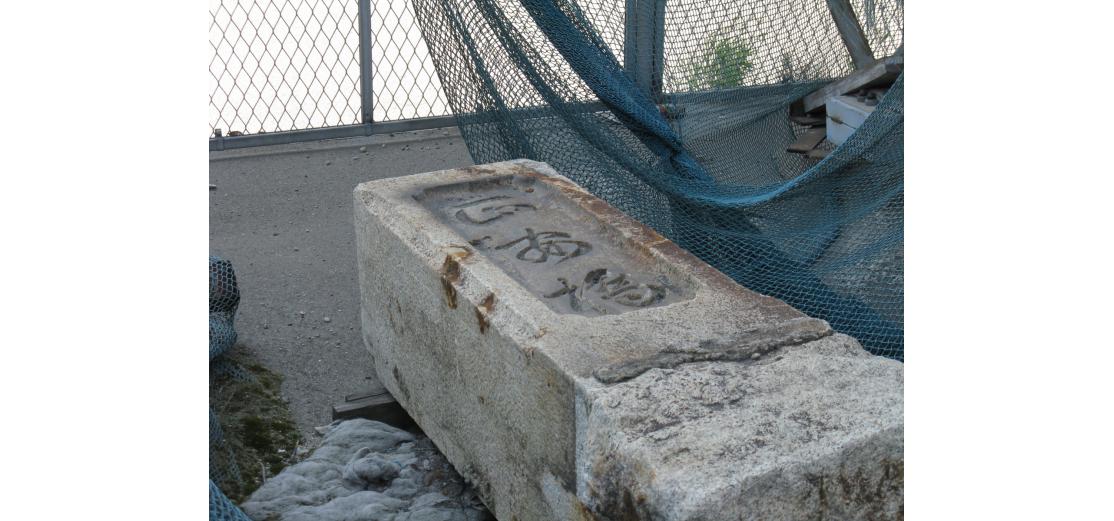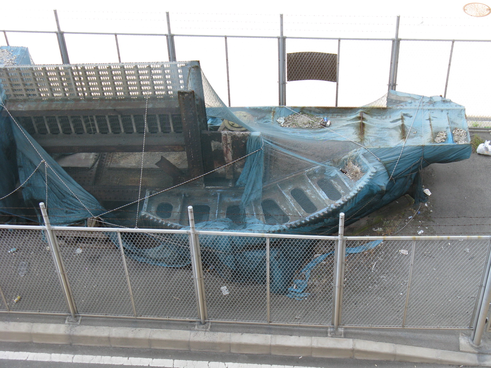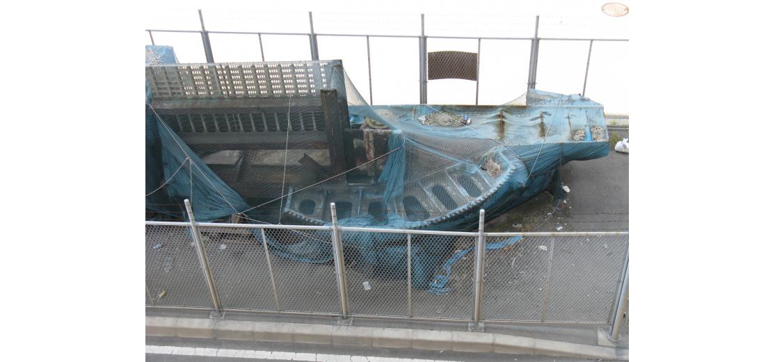 - (2)中島新橋の下に移設を想定して,部材が保存されている.