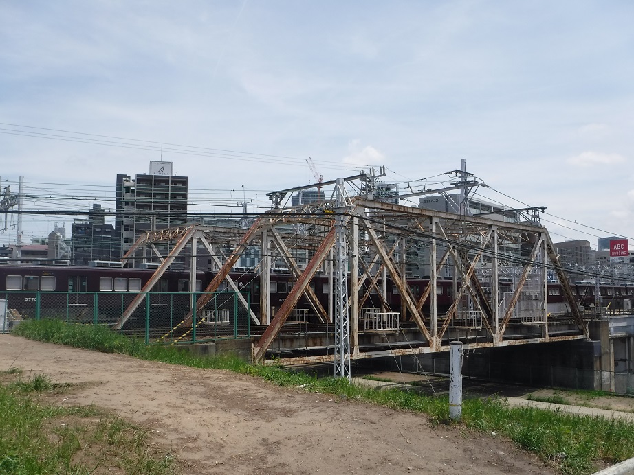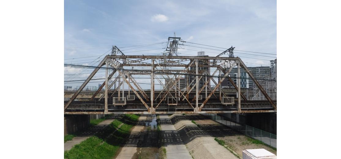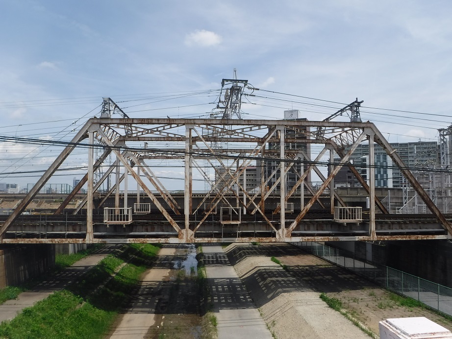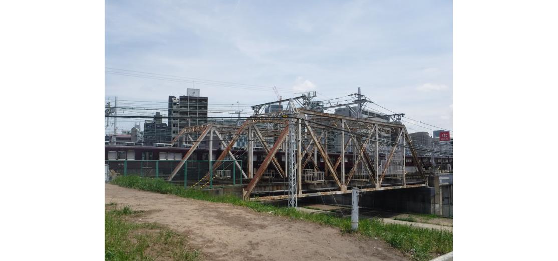 (1)旧長柄運河上に架かる.