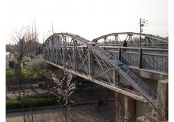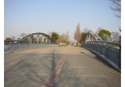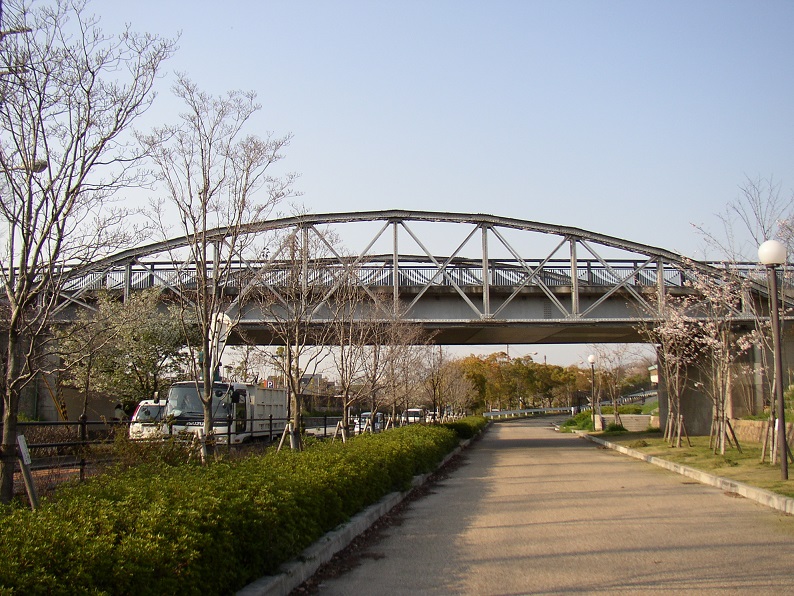 - (2)1876(明治6)年架橋の心斎橋(1907年まで)の主構を転用. 1907(明治40)年から1927(昭和2)年まで境川橋.1928(昭和3)年から1955(昭和30)年まで新千船橋.1973(昭和48)年から1988(昭和63)年まで篠懸(すずかけ)橋。1989(平成1)年から緑地西橋.