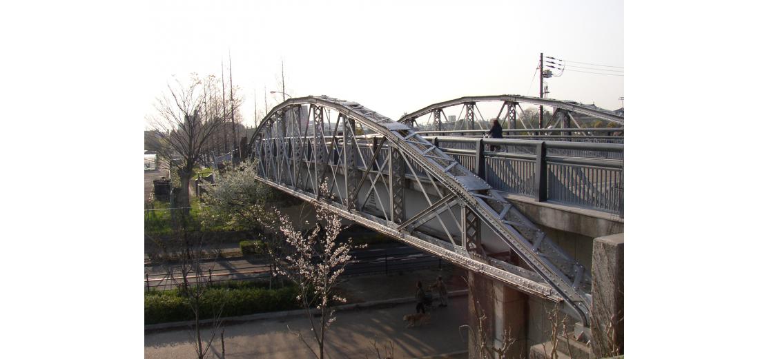 - (1)明治6年の心斎橋のボーストリングトラス材(現存するもっとも古い鋼橋)を装飾的に取り付けている.