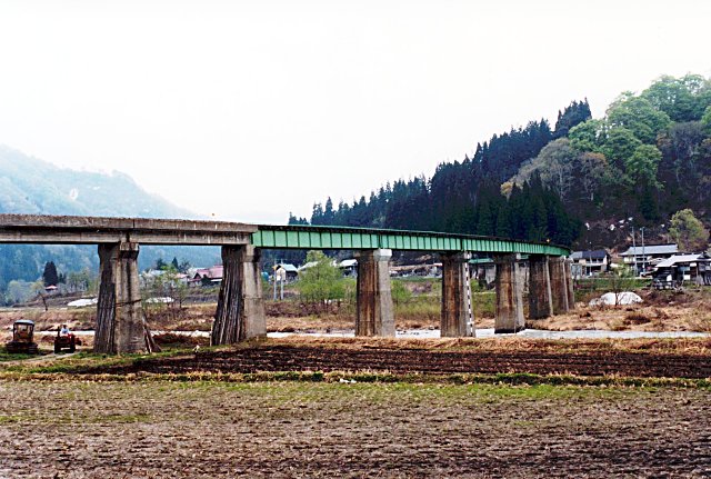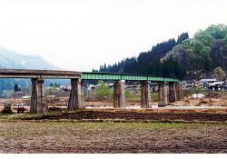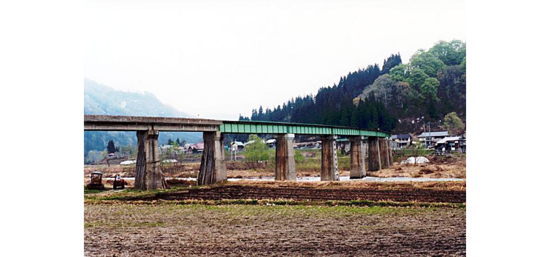 (1)曲線半径250mの橋梁で,鉄筋コンクリート桁との混成である.