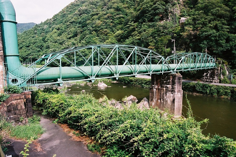 (1)側道を跨ぐサイフォン管の部分がユニークな景観を生んでいる.