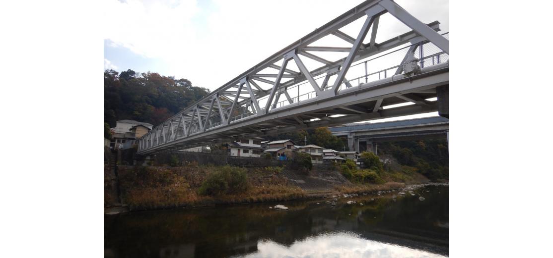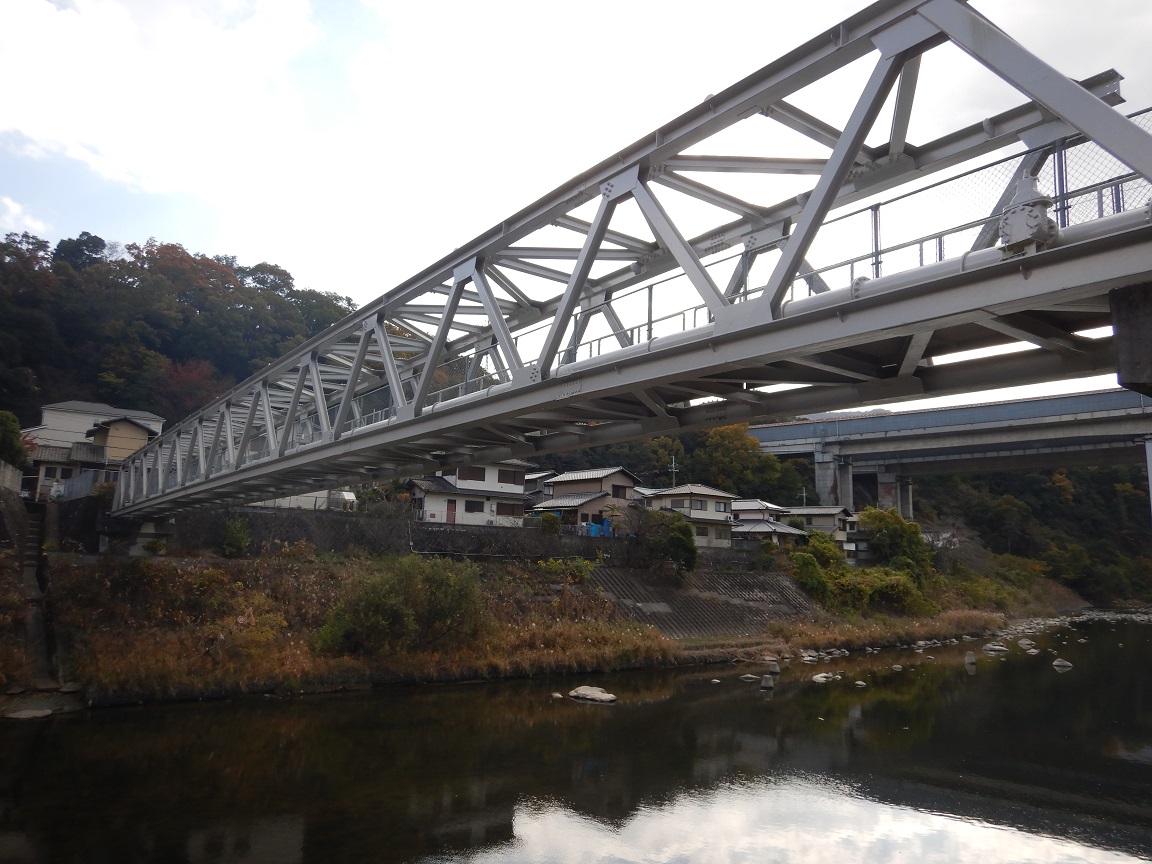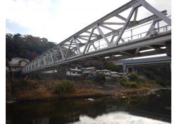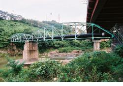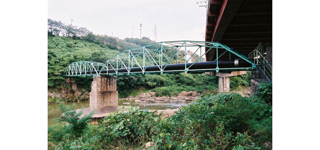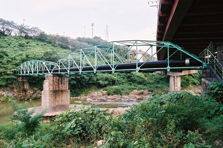 (1)水管橋は2004年台風23号の洪水で流出.2005年,単純トラスで架替(2枚目の写真が新橋).