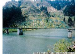 - (2)2011年7月の福島豪雨により鈑桁が流出した.2021年現在,復旧工事中.