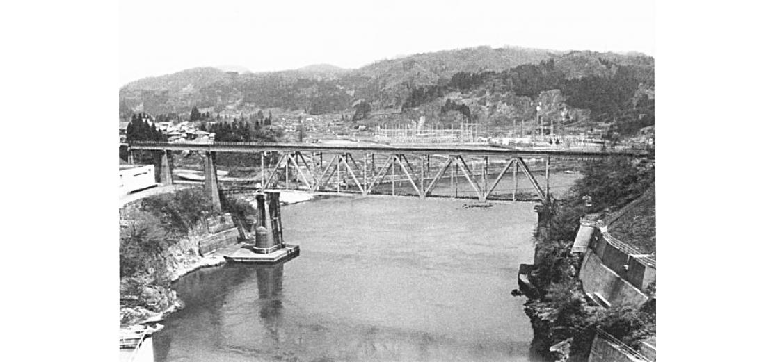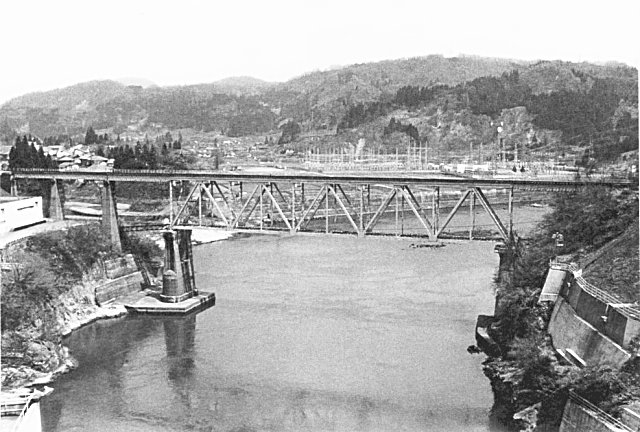 - (1)川口-田子倉間はもともと田子倉発電所建設の資材運搬用に建設された.トラスは垂直吊りケーブルエレクションで架設.