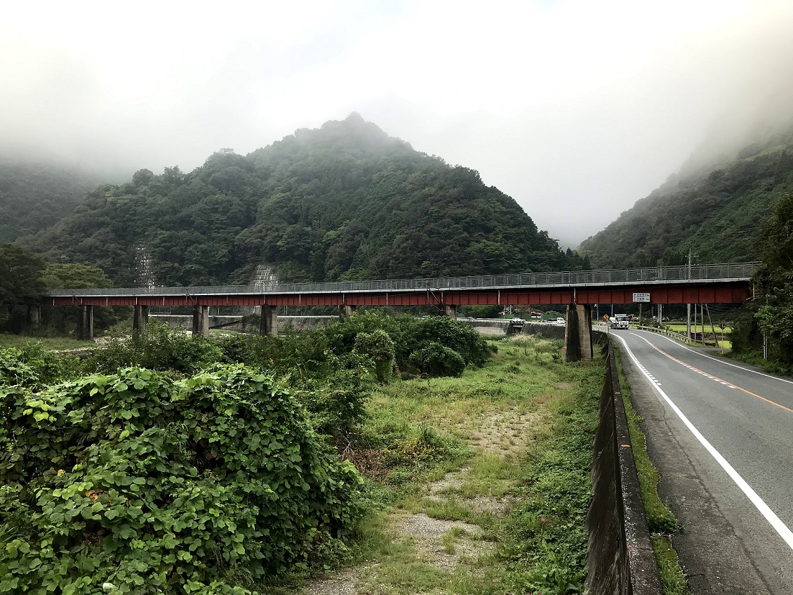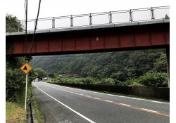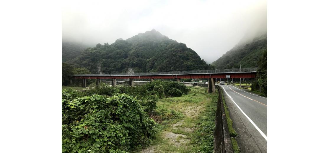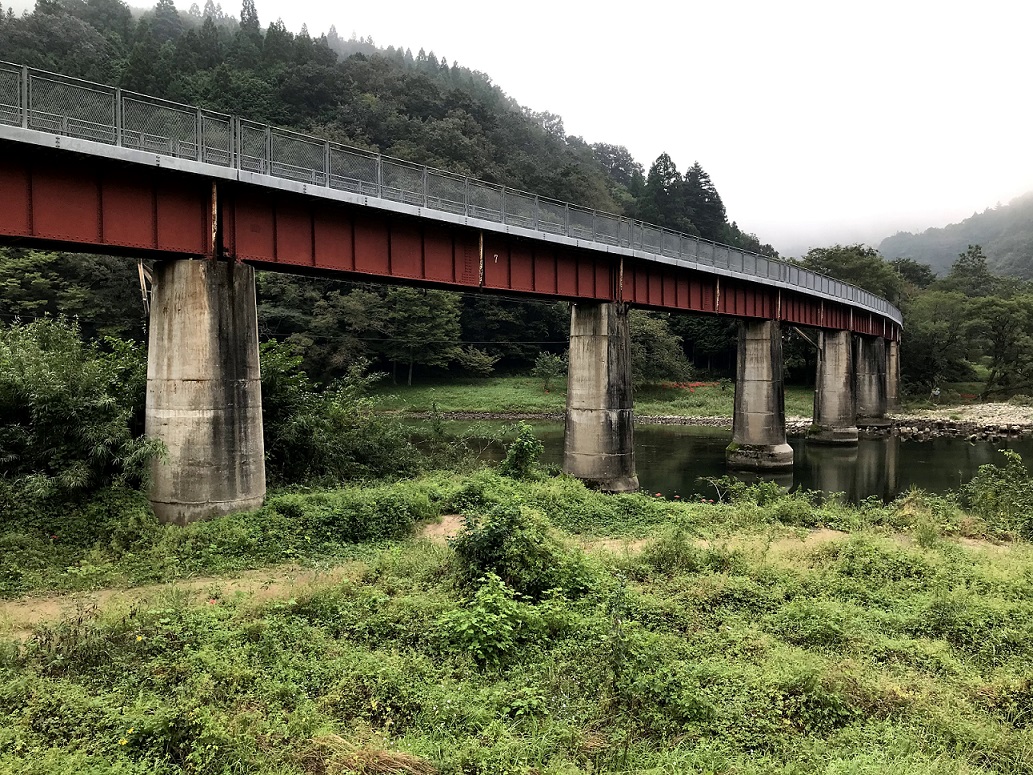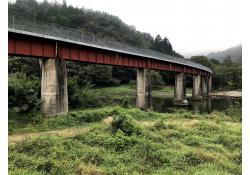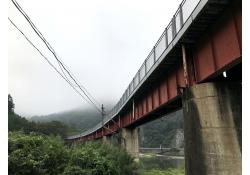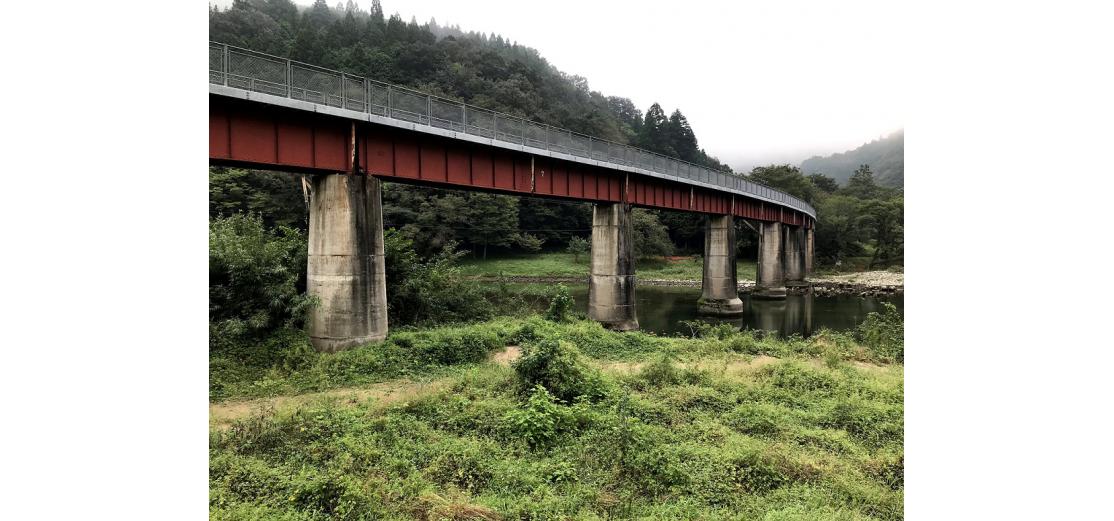 (1)高梁川左岸に沿って旧線の軌道が伯備旧線サイクリング道として良好に保存・活用.