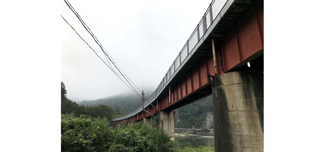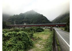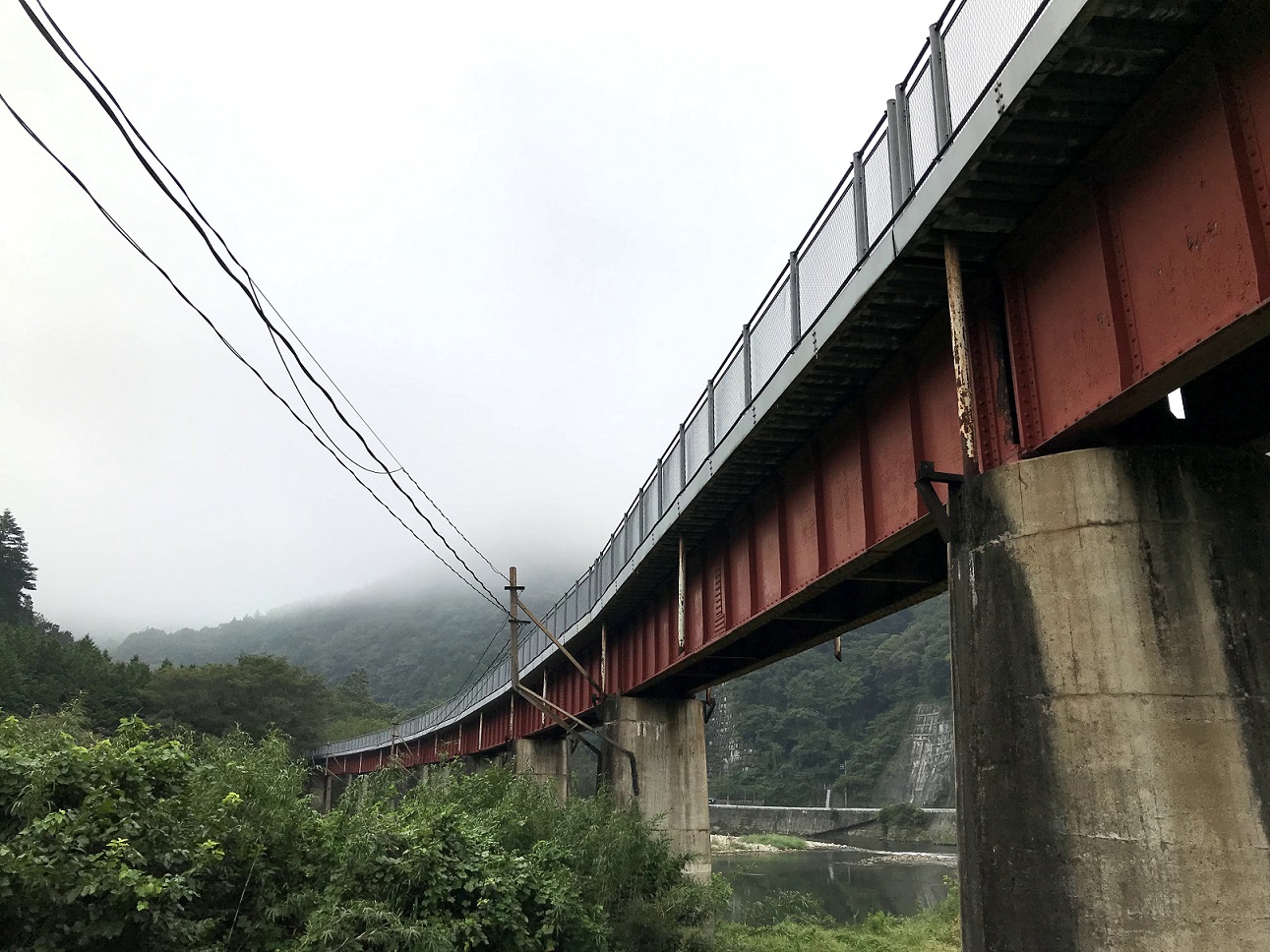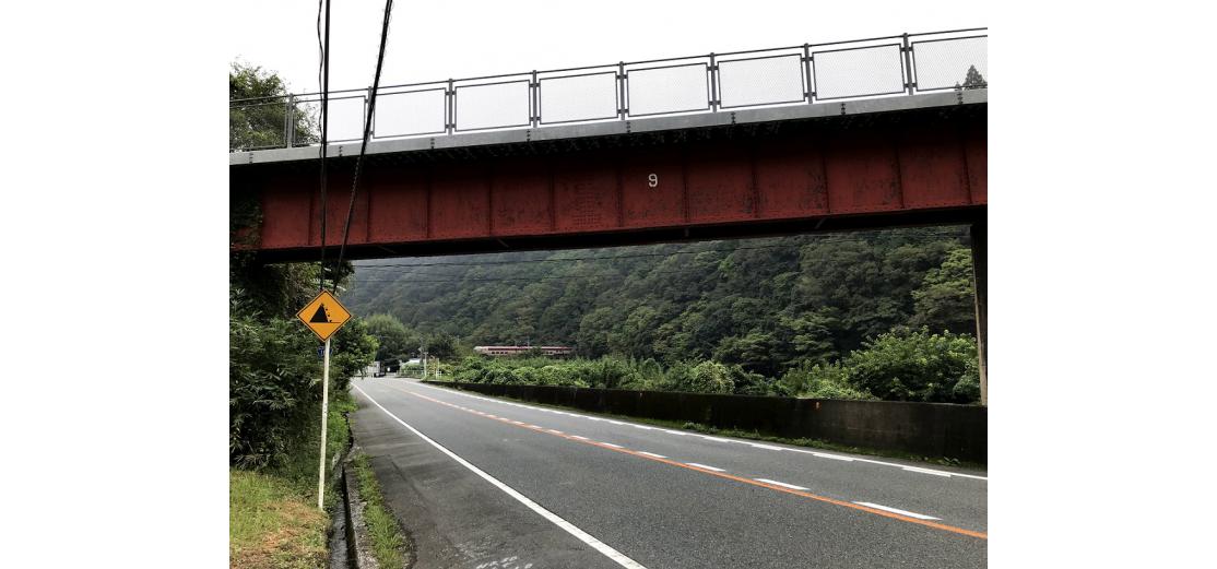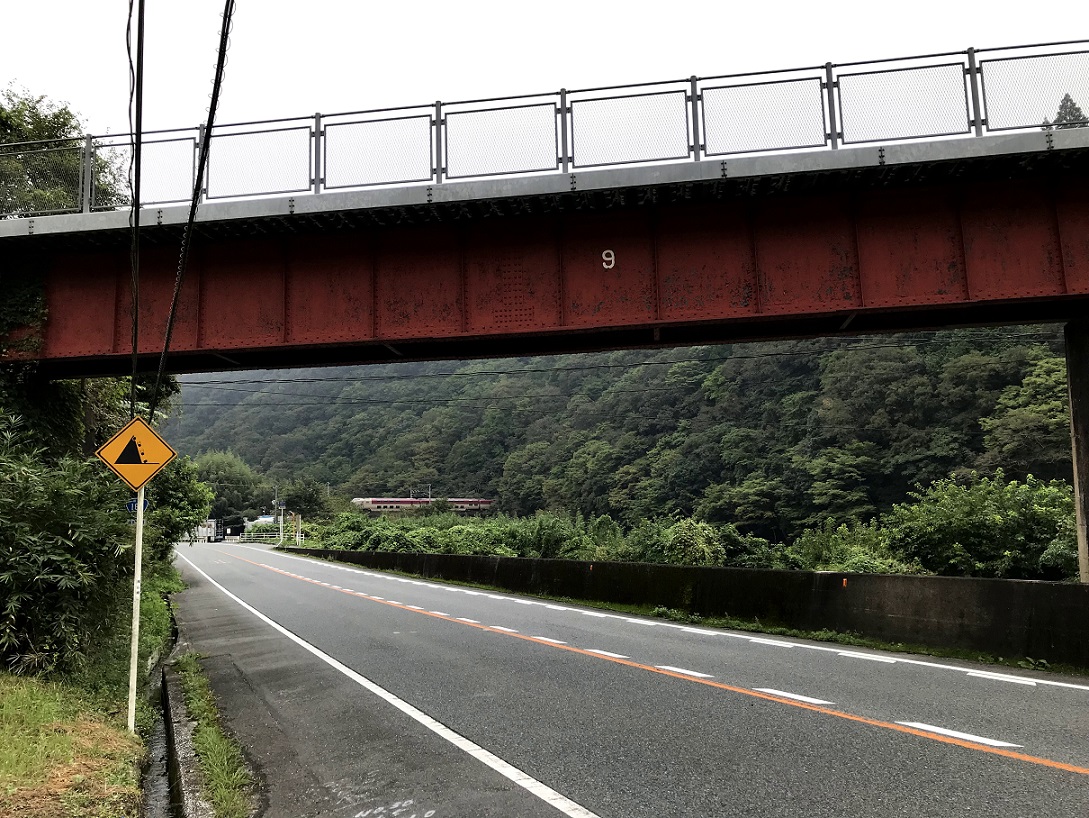 (1)高梁川左岸に沿って旧線の軌道が伯備旧線サイクリング道として良好に保存・活用.
