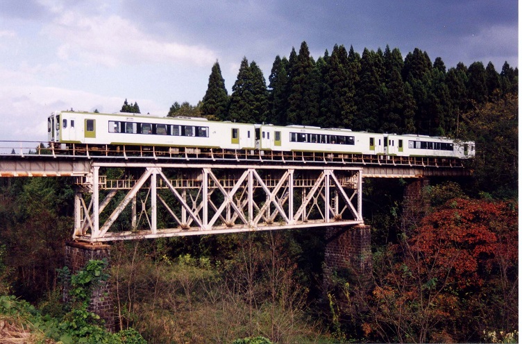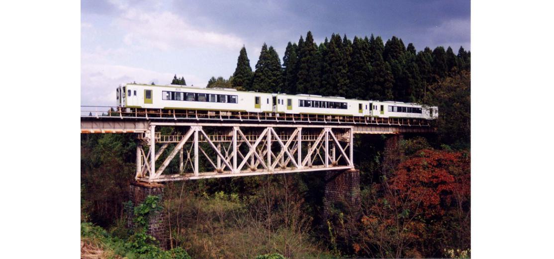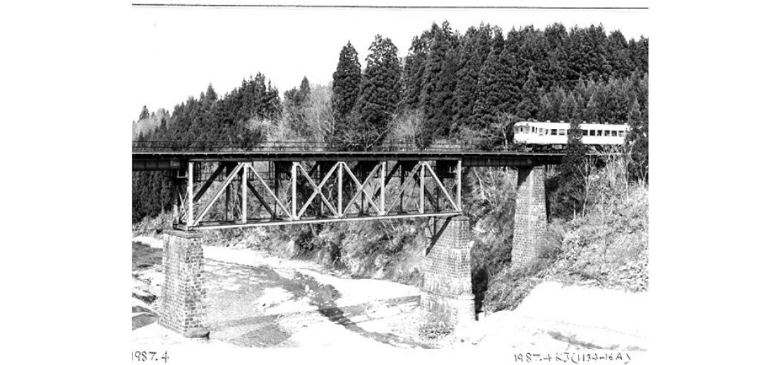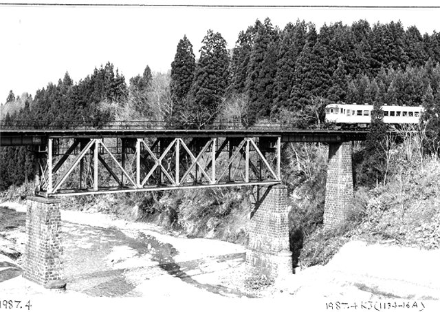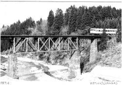 - (1)トラス桁の材料は,東海道線第四相沢川橋梁から撤去された桁を使用したとされている.事実,桁の部材には旧桁のものと思われるリべットなどが残っている.