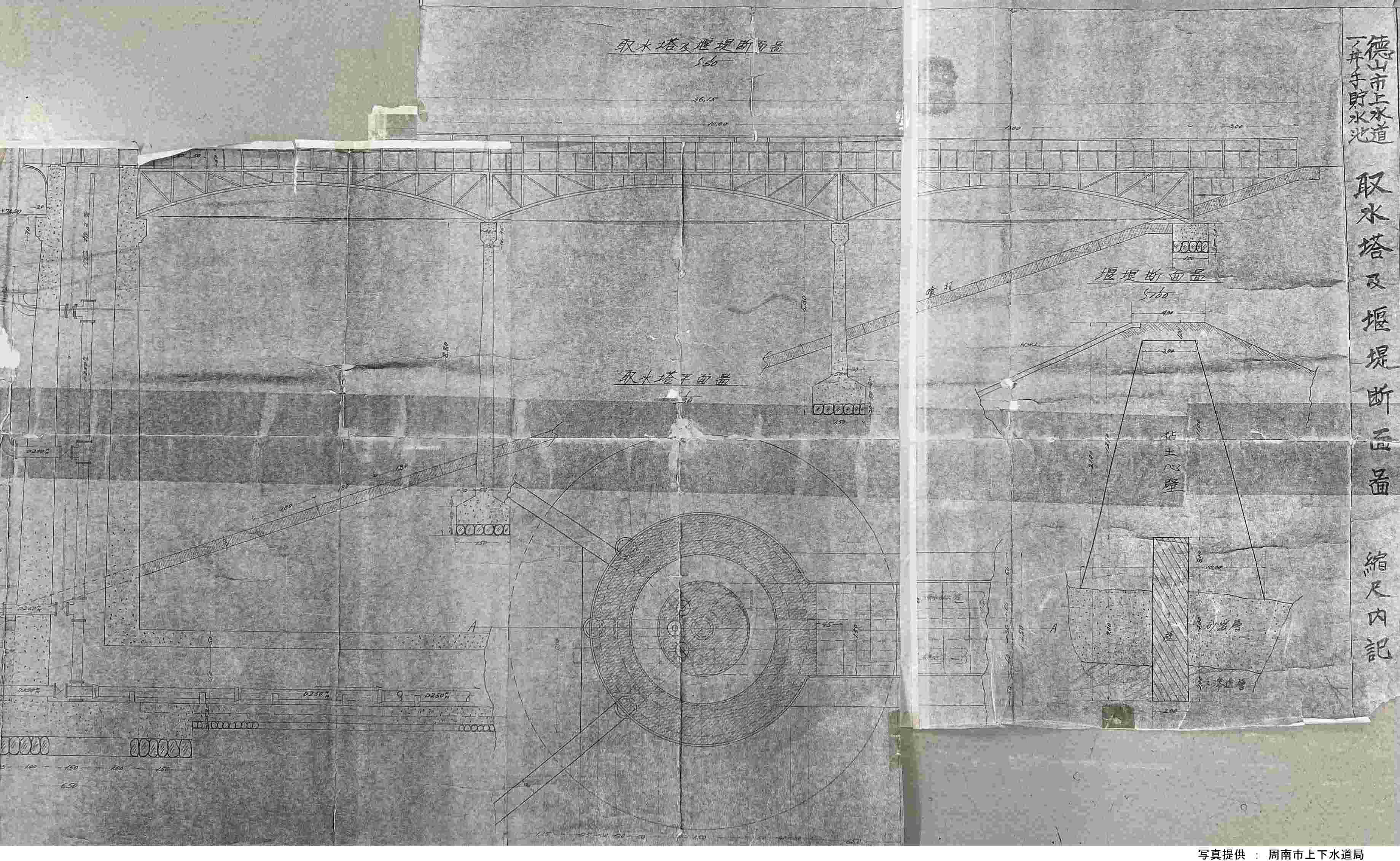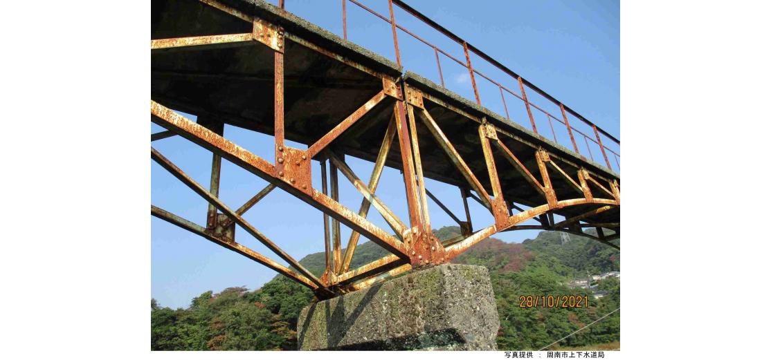 (1)貯水池の取水塔に架かる3連のスパンドレルブレーストアーチ.