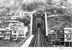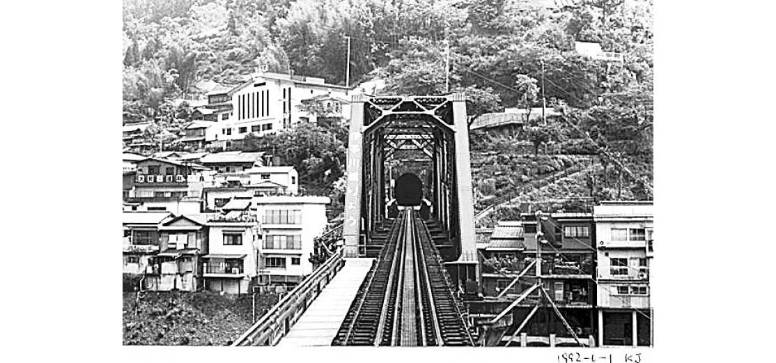 - (2)ルート変更により架け替えられたもので,旧橋梁は半径300mの曲線トラスで桁自体が曲がっていた.