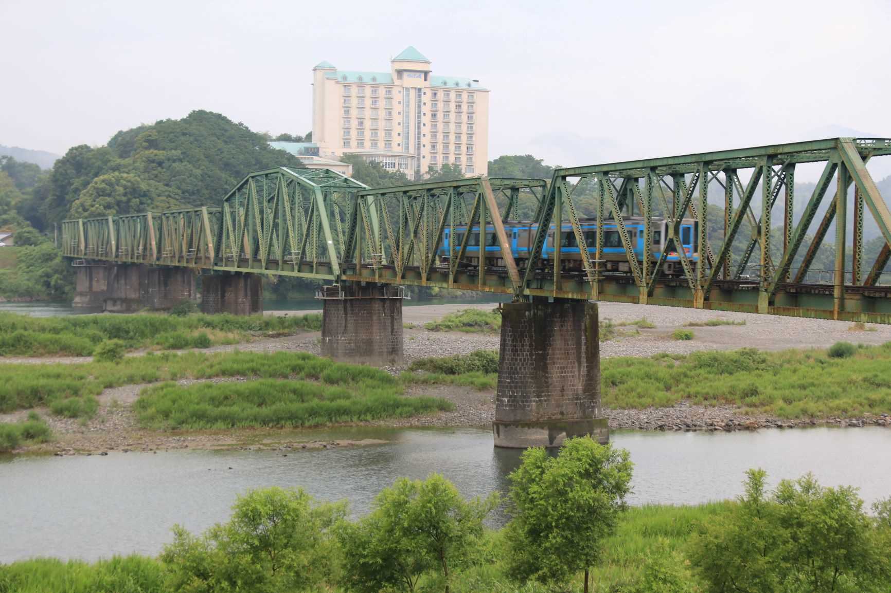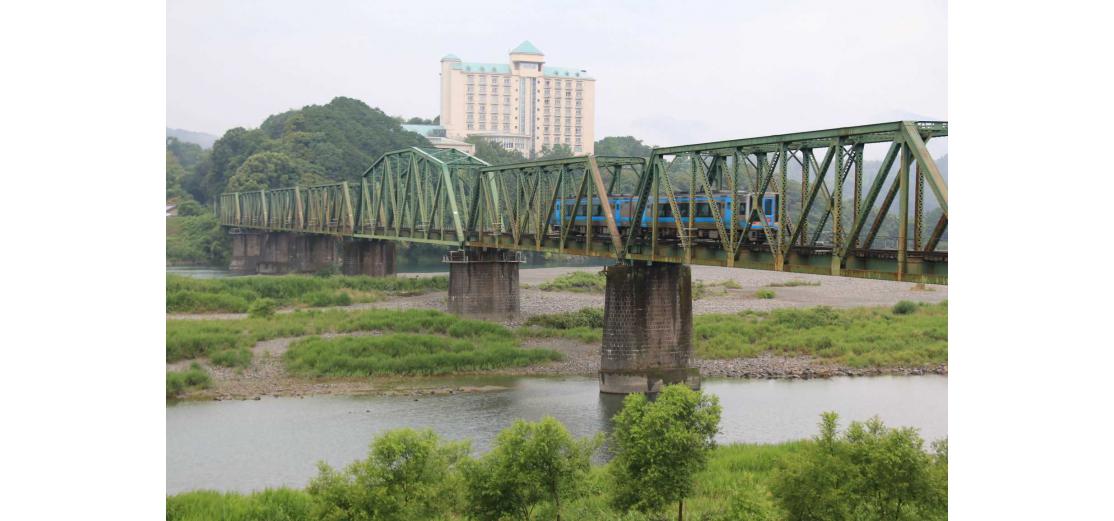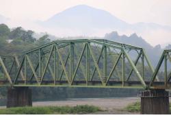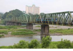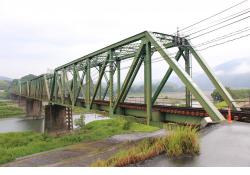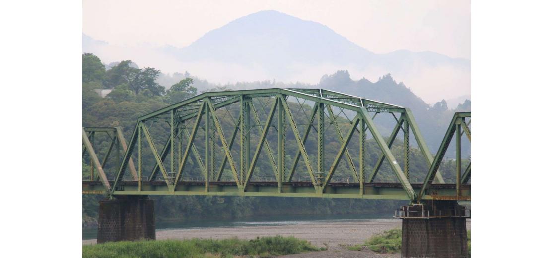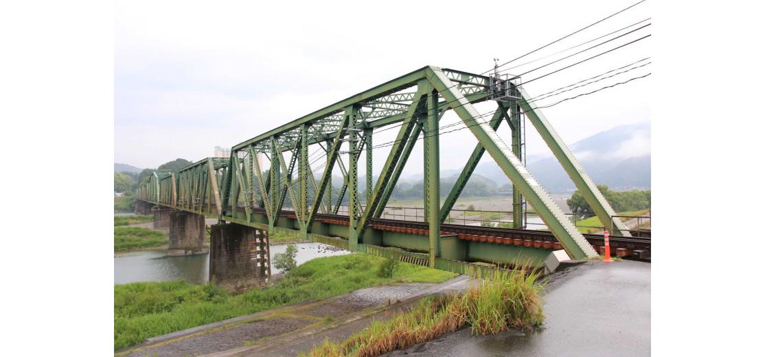 - (1)中央部に曲弦ワーレントラス1連,その前後に平行弦プラットトラスを配した全8連の鉄道橋.