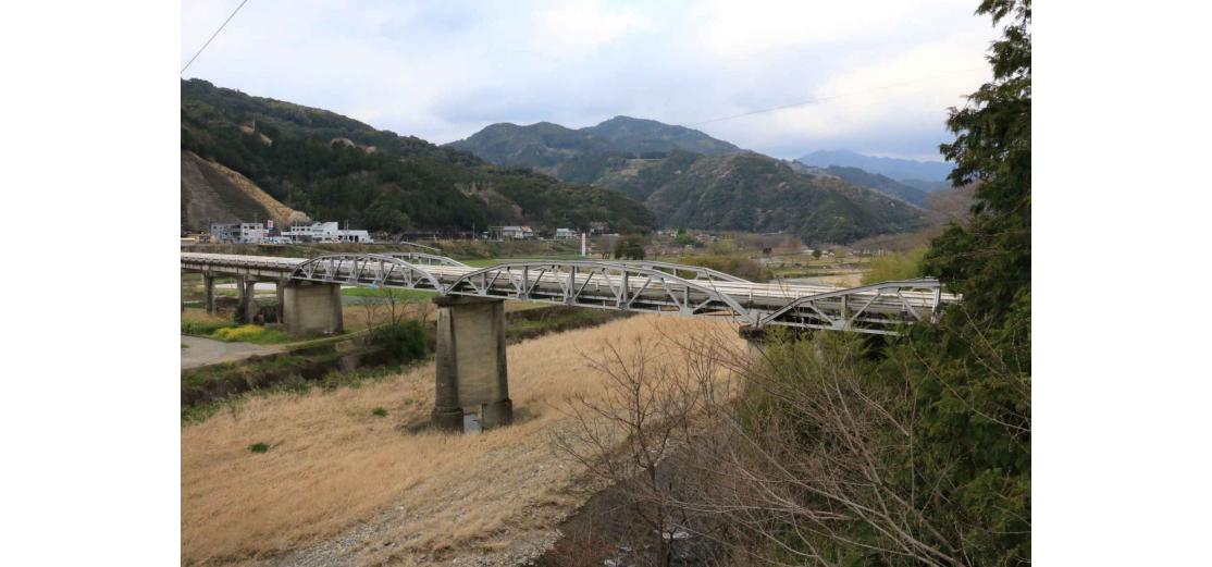 (1)2格間毎に垂直材を有する扁平なボーストリングワーレントラス3連.
