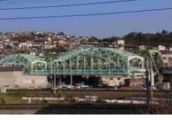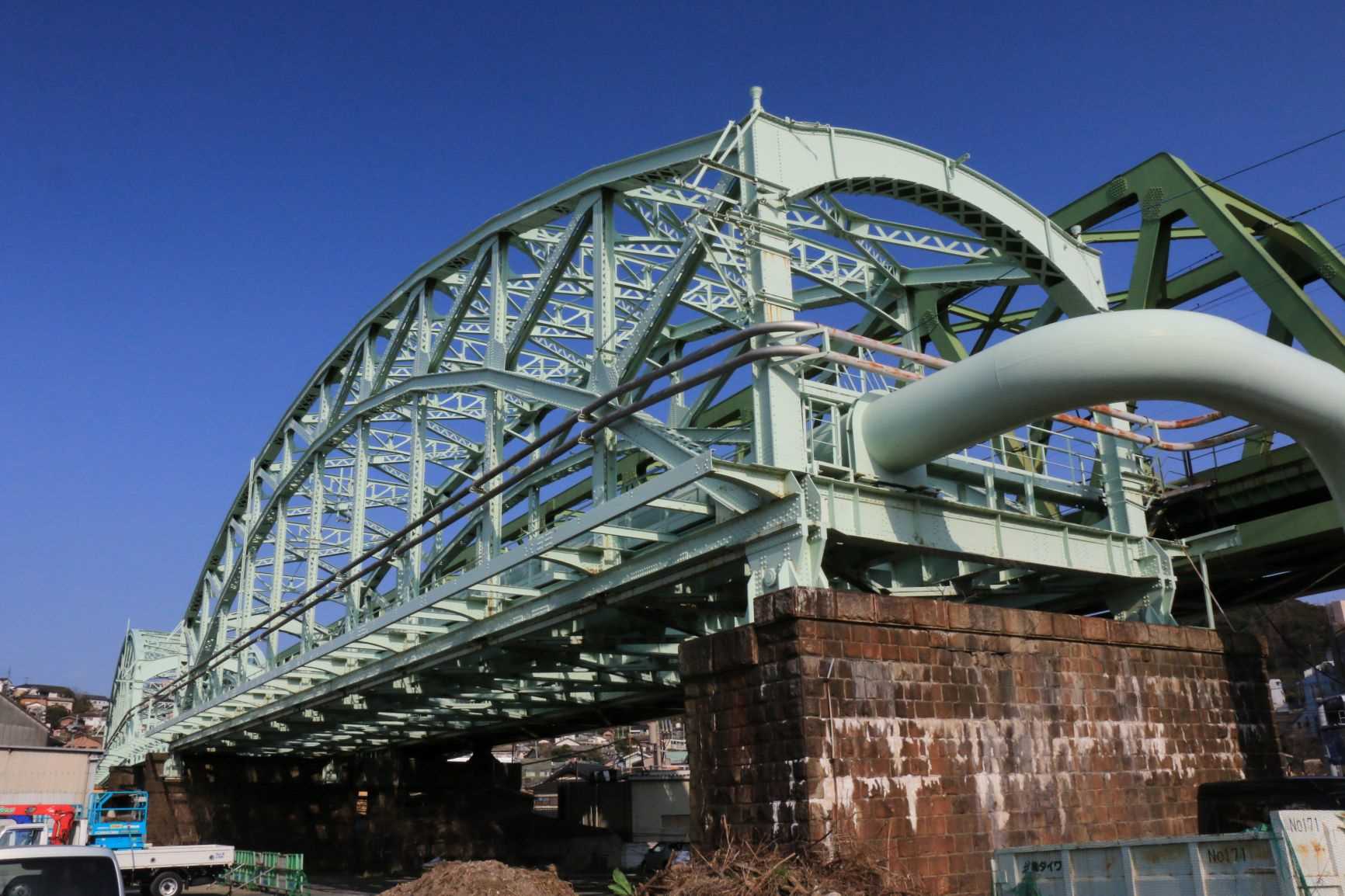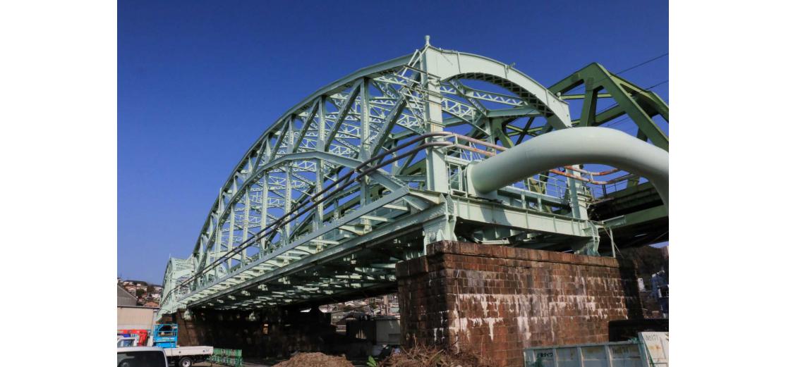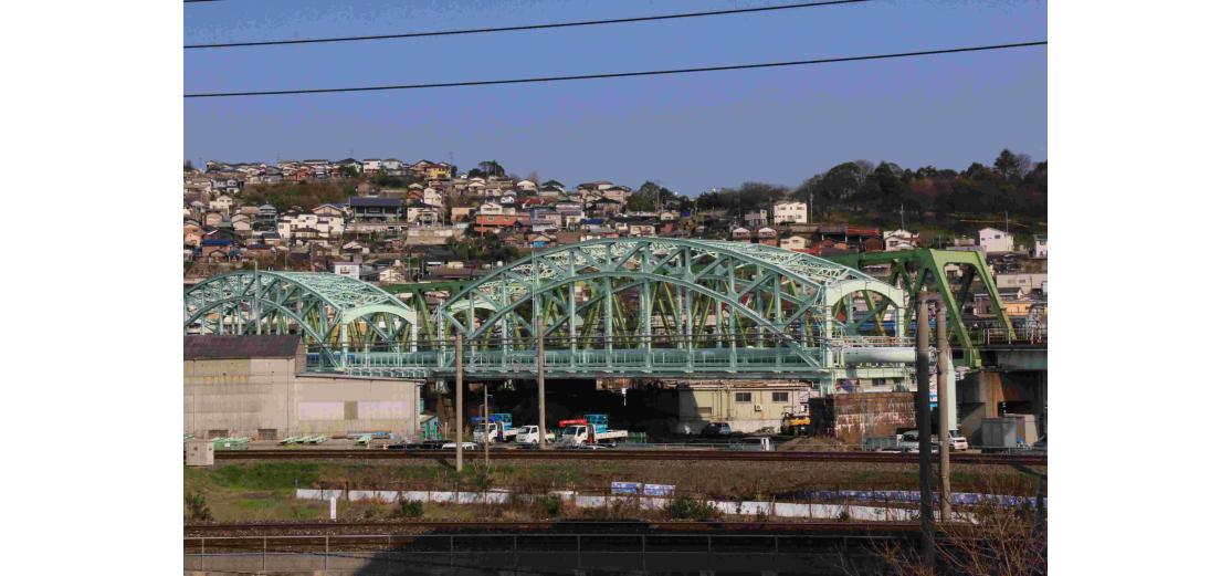 - (1)千住大橋(東京)に次いで古く,鉄道橋では現存最古のブレーストリブタイドアーチ.